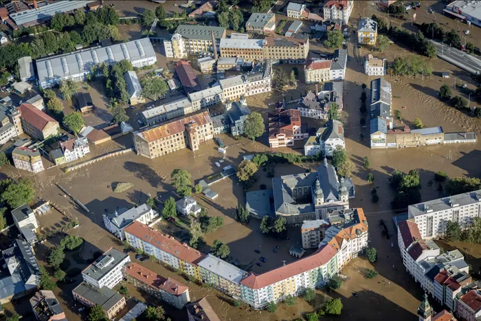 Zaplavené centrum města Krnov, Bruntálsko, Zdroj: ČTK Petr Sznapka