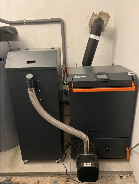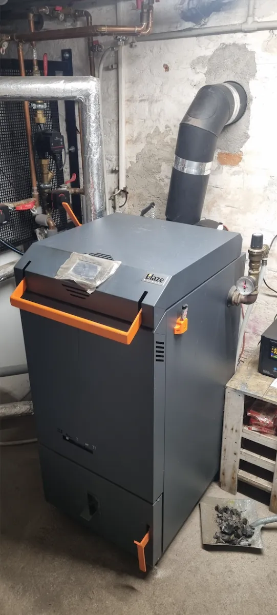 V rodinném domě proběhla instalace kotle BLAZE NATURAL PLUS. Tento moderní zplynovací kotel na dřevo je známý svou vysokou účinností, nízkými emisemi a jednoduchou obsluhou.Prohlédnout instalaci →