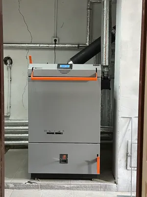 Při venkovních teplotách 5–10 °C stačí zatápět obden, což výrazně snižuje potřebu obsluhy kotle. Při jmenovitém výkonu 25 kW se nádrže natopí za 12 hodin, což zajišťuje plynulé a efektivní vytápění. Vytápěná plocha 160 m² (2 NP) je nyní energeticky úspornější, přičemž byl zachován původní komín s vyvložkováním.