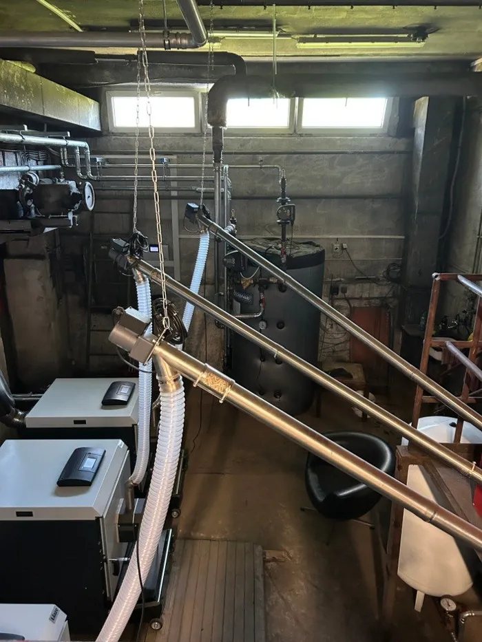 Celosezónní zásobník pojme 35 tun pelet. Pelety jsou dopravovány automaticky podtlakově do mezizásobníku, ze kterého jsou dopravovány mechanicky pomocí šnekového podavače k hořáku kotle.