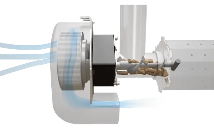 Nejpokročilejší regulace spalování pelet bez ztráty účinnosti. Kotel RPC využívá dva integrované ventilátory s regulací otáček, které přesně dávkují vzduch i palivo. Díky tomu si kotel zachovává stabilní účinnost v průběhu celé topné sezóny a výrazně tak snižuje provozní náklady.