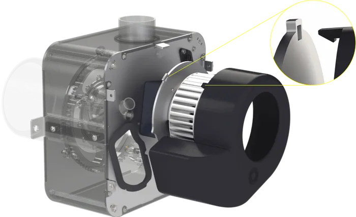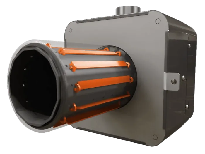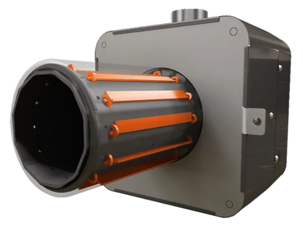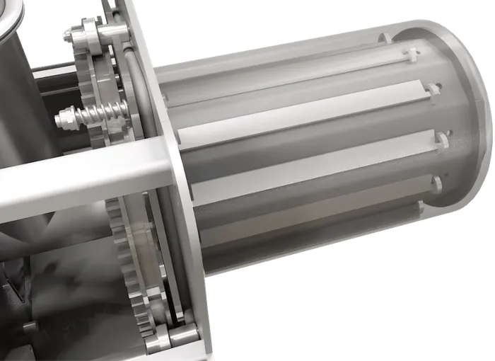 Vylepšená konstrukce rotační komory je uložena na čtyřech robustních ložiskách, která jsou účinně chráněna před vysokými teplotami. Díky tomu je zajištěn plynulý chod bez zbytečného opotřebení, dlouhá životnost a maximální spolehlivost i při každodenním provozu.