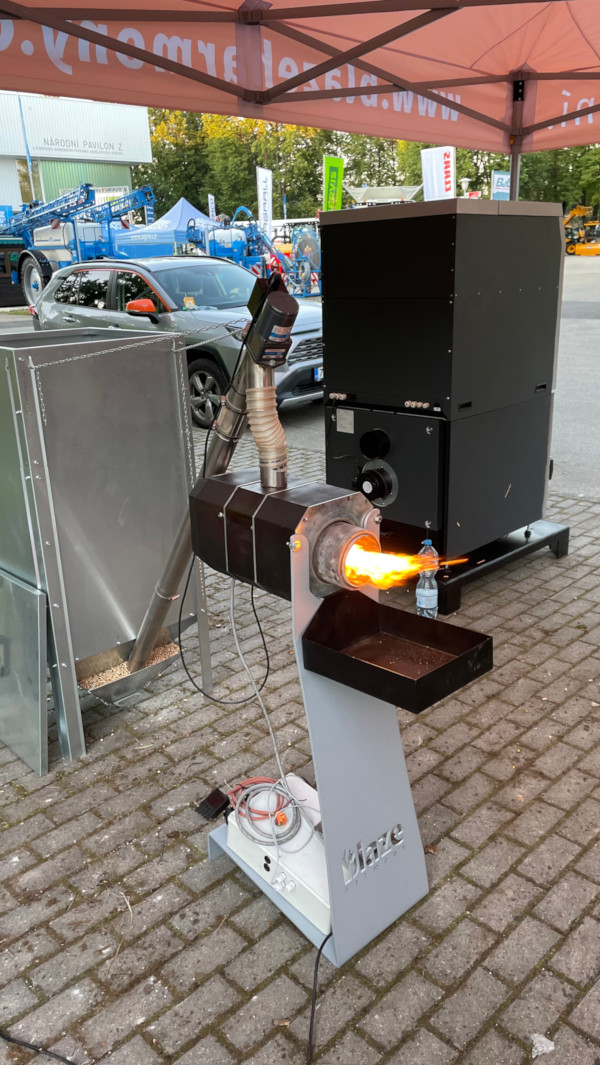 Automatické kotle na pelety zastupoval model ROTARY PELL COMPACT 15 se silem. Návštěvníci si také mohli zblízka prohlédnout funční zapálený hořák na pelety XS26 a pozinkované silo s objemem 330 litrů.