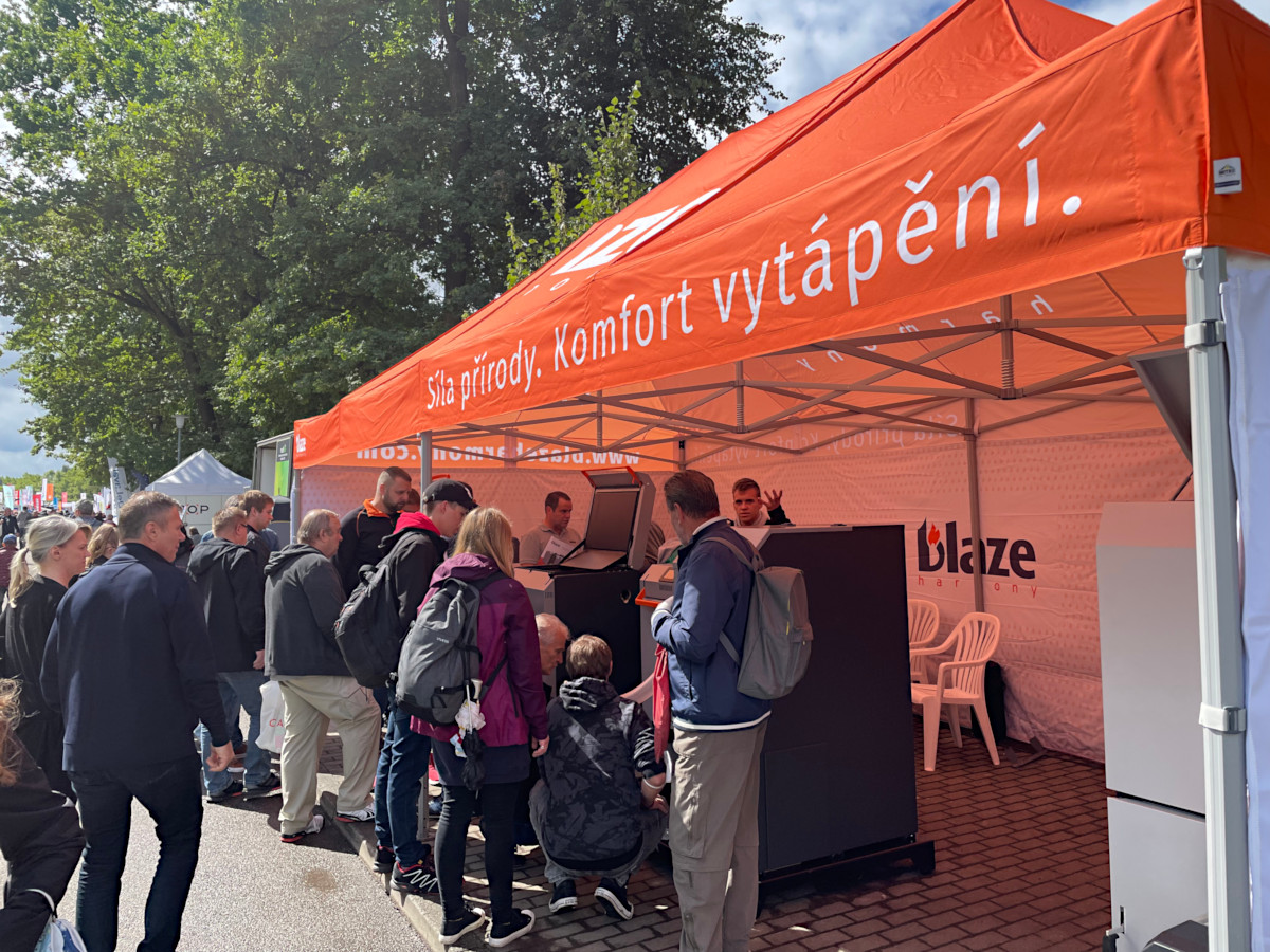 Na výstavě jsme prezentovali kotel na dřevo BLAZE HARMONY 18 Lambda, BLAZE COMFORT COMBI s regulací ecoMAX 860T a silem BH 370l. Dále byl k vidění kotel BLAZE PRAKTIK 40 s regulovatelností 30–100 %, který umožňuje instalaci i bez akumulační nádrže.